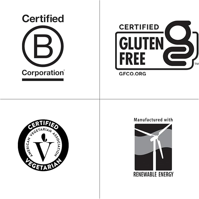 - CERTIFIED – Certified Gluten Free by GFCO, Certified Vegetarian by AVA