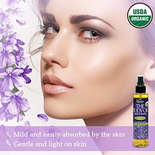 US Organic Body Oil - Elegant Lavender - Jojoba and Rosehip Oil with Vitamin E, Certified Organic, No Alcohol, Paraben, Artificial Detergents, Color or Synthetic perfumes, 5 Fl.oz. (Lavender)