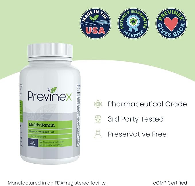 - MULTIVITAMIN WITH VITAL NUTRIENTS: Formulated with a balance of essential minerals, vitamins, antioxidants and other key nutrients. Physician recommended daily dietary supplement for adults formulated with the highest quality forms of all nutrients. Previnex Multivitamins are manufactured at pharmaceutical grade levels and include the most optimal levels of vital nutrients.