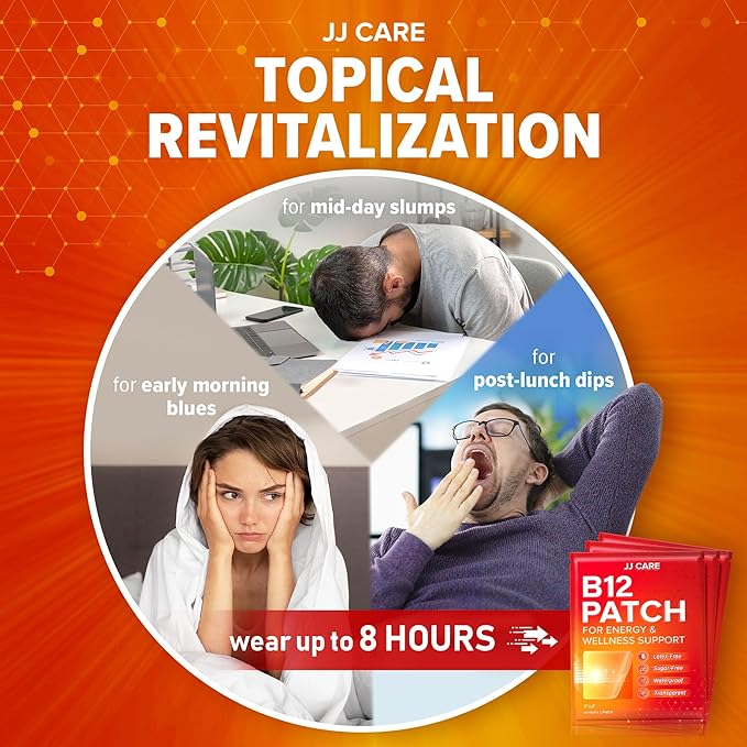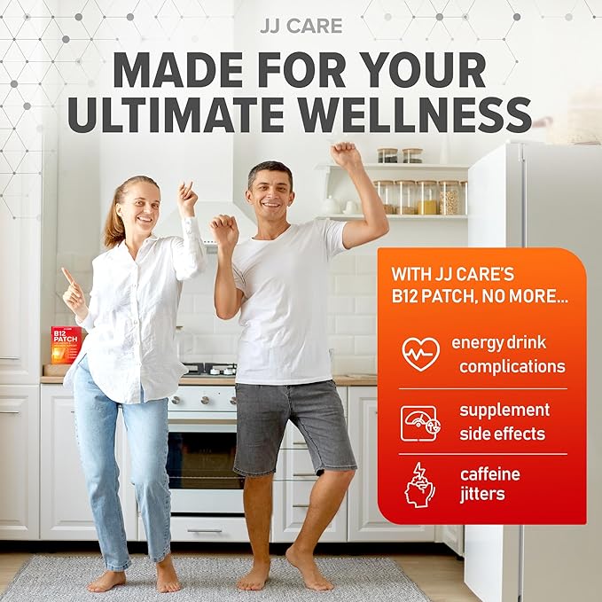 - ✅ DAILY WELLNESS – JJ CARE B12 Patch enables you to feel great all of the time! Helps in conquering sluggish afternoons with the transdermal JJ Care B12 patch. Each patch is infused with all-natural ingredients to give your health that much-needed pick-me-up.