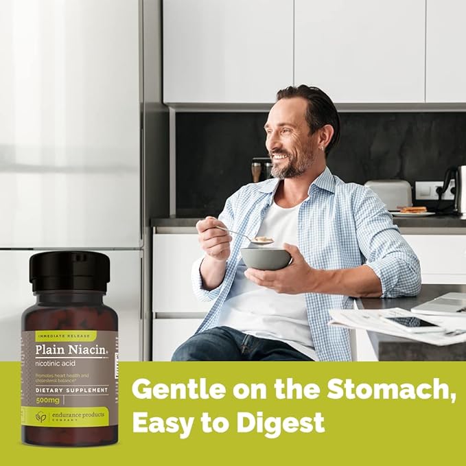 Endur B3 Plain Niacin - 500mg Immediate Release Vitamin B-3 with Flush - Nicotinic Acid 100 Tab-Phytosterols 450mg IR 60 Tabs