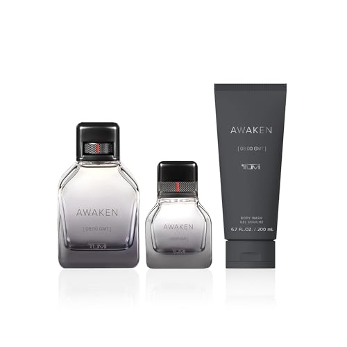 TUMI AWAKEN [08:00 GMT] Gift Set - Refreshing Cologne & Body Wash for Men - 3.4 oz & 1.0 oz Eau de Parfum, 6.7 oz Body Wash