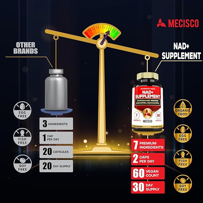 NAD+ Supplement with Nicotinamide Riboside w/Quercetin, Resveratrol, Turmeric, Rhodiola Rosea, Astragalus - 60 Count