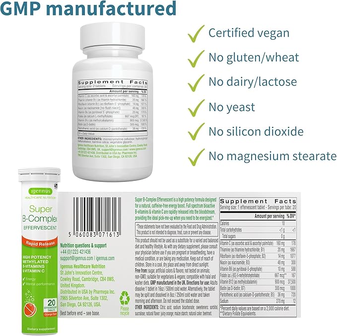 - GMP MANUFACTURED IN THE UK & USA. Vegetarian & Vegan. MTHFR friendly (no synthetic folic acid)