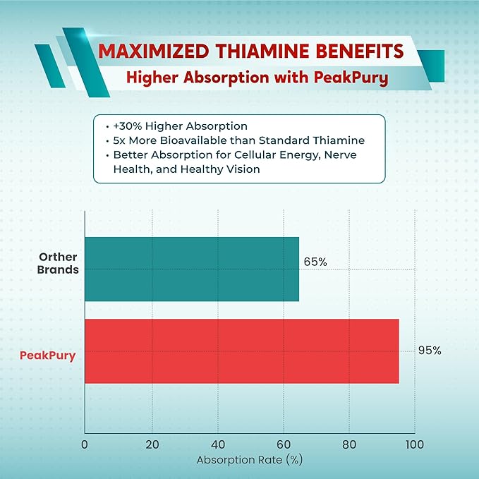 - Maximize Value with More Capsules: Unlock exceptional value with PeakPury’s premium Benfotiamine Supplement, offering 150 capsules per bottle, providing a 5-month supply to support your long-term wellness journey