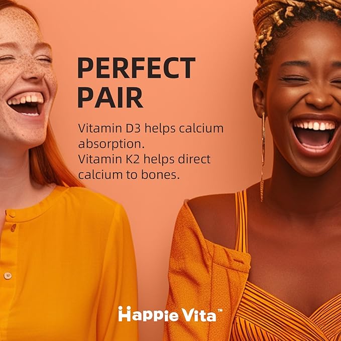 - Perfect Pair: Vitamin D and K work synergistically, Vitamin D3 helps your body absorb calcium, while vitamin K2 directs calcium to your bones instead of joints and arteries, where too much calcium could be problematic.