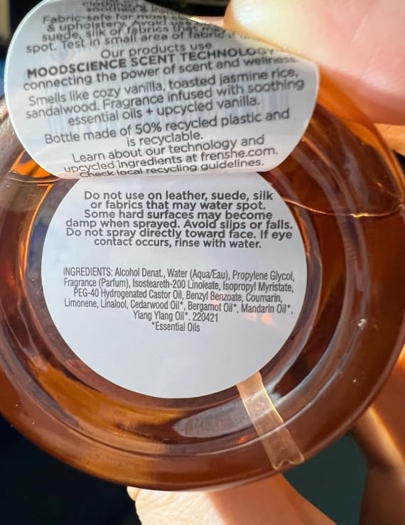 - Breathe in a moment to feel: Peaceful, Serene and Content Notes of Cozy Vanilla, Toasted Jasmine Rice, Warm Amber and Creamy Musk Infused with soothing essential oils and upcycled Vanilla Sulfate, Paraben and Phthalate Free Free of artificial dyes, Cruelty-free and Vegan Backed by MoodScience Technology and Dermatologist-tested Bottle made of 50% recycled plastic with Removable Pumps for easy recycling Fabric-safe for most clothing, linens and upholstery