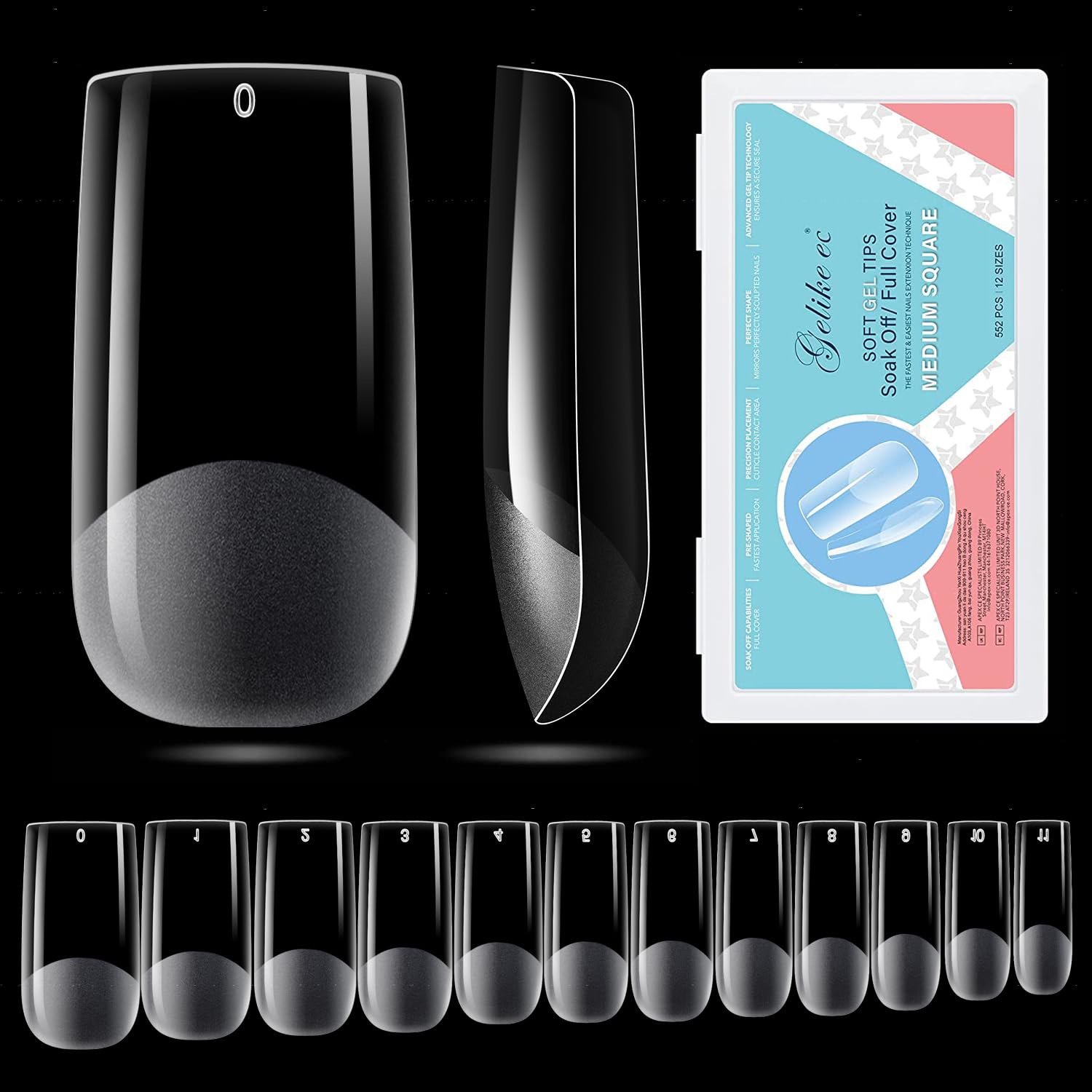 Gelike Ec Soft Gel Full Cover Nail Tips Kit For Soak Off Nail Extensions, 552 Pcs Clear Medium Square Gelly Tips Pre-Buff Pmma F