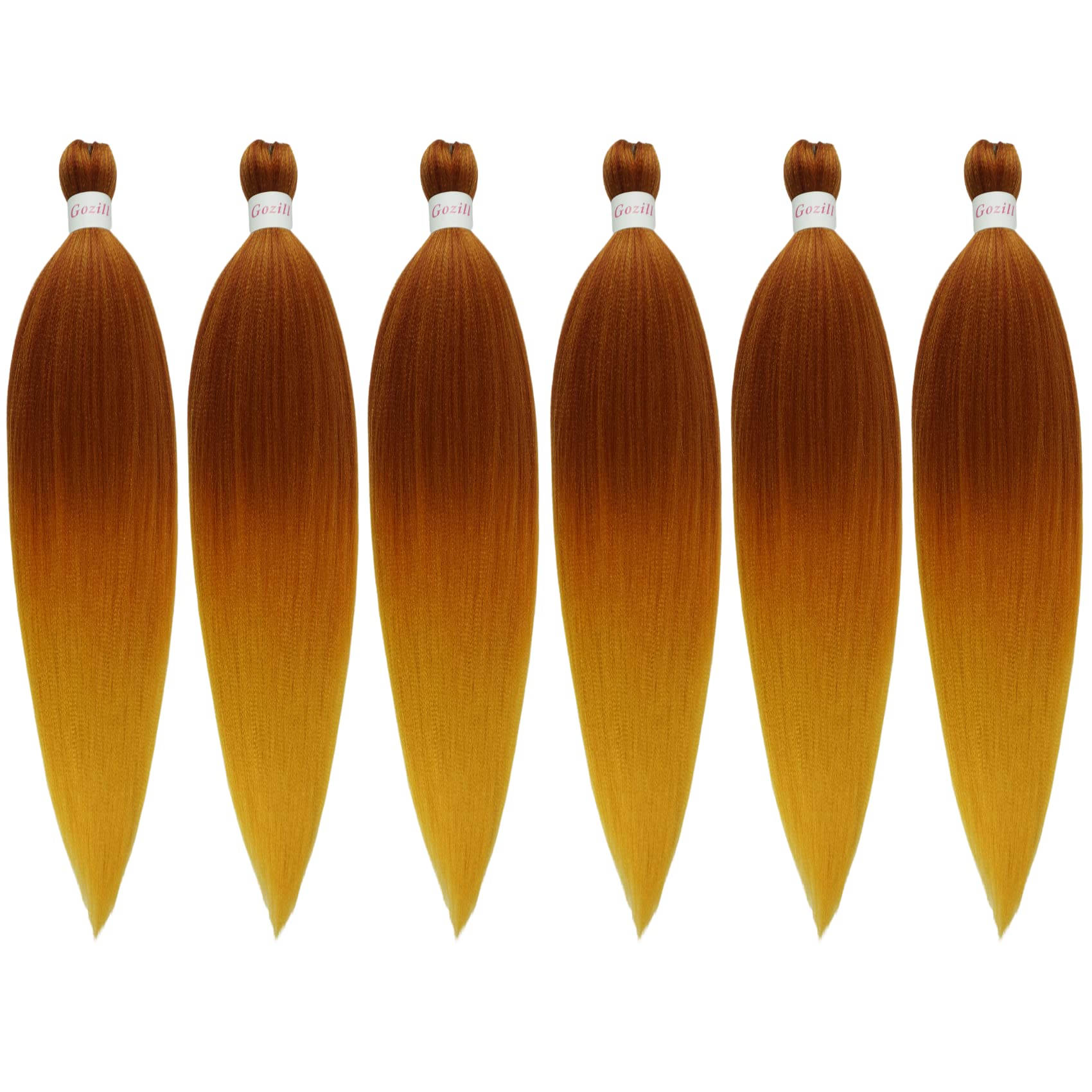 Gozill Ginger Golden Ombre Braiding Hair Pre Stretched Kanekalon Braiding Hair Micro Ez Braid Hypoallergenic Braiding Hair Color