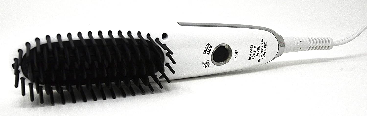 Hot & Hotter mini heated straightening brush. Evenly distributes heat with the ceramic plated bristles. Provides two heat settings: 320 F and 430 F. Features an auto shut off that activates after an hour. 360 swivel cord prevents getting tangled up. Worldwide dual voltage 120V to 240V.