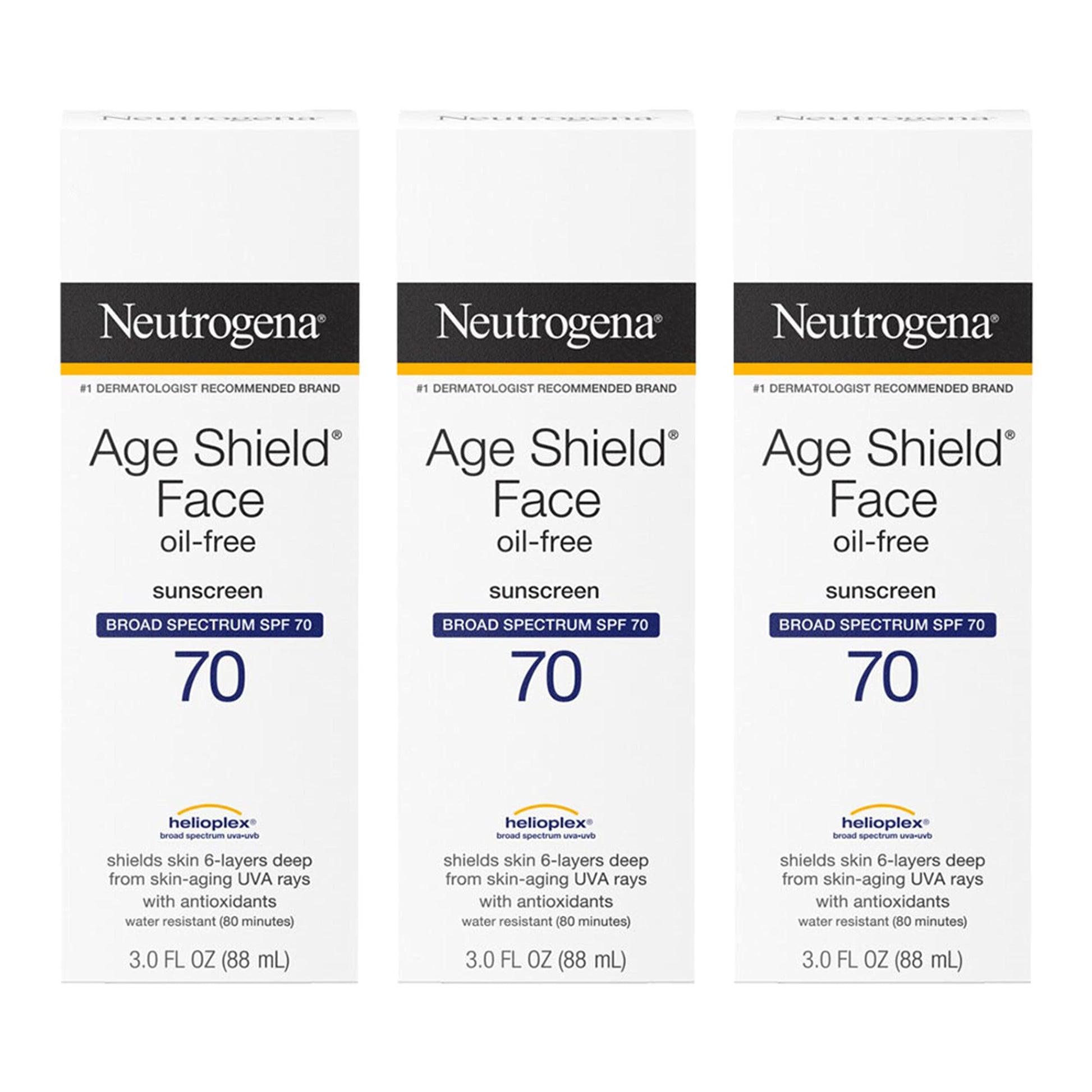 Help Keep Your Skin Protected From Damaging Uv Rays With Neutrogena Age Shield Oil-Free Face Lotion Sunscreen With Broad Spectrum Spf 70. Formulated With Helioplex, A Sunscreen Technology, The Broad Spectrum Facial Sunscreen Shields Skin Six-Layers Deep From The Sun 'S Damaging Rays. Our Sunscreen Screens Burning Uvb Rays And Helps Stop Aging Uva Rays From Penetrating Surface Layers For Deep Cellular Protection. This Dermatologist-Tested Moisturizing Sunscreen Also Contains Skin Conditioners To Hydrate And Replenish Skin. When Used As Directed With Other Sun Protection Measures, Our Spf 70 Face Sunscreen Can Help Decrease The Risk Of Skin Cancer And Early Skin Aging Caused By The Sun. From The #1 Dermatologist-Recommended Suncare Brand, Its Unique Formula Is Paba- And Oil-Free As Well As Non-Comedogenic So It Won 'T Clog Pores. Packaging And Formulation May Vary. New Formula Contains No Oxybenzone And Uses Avobenzone For Optimal Protection From Uva & Uvb Rays.