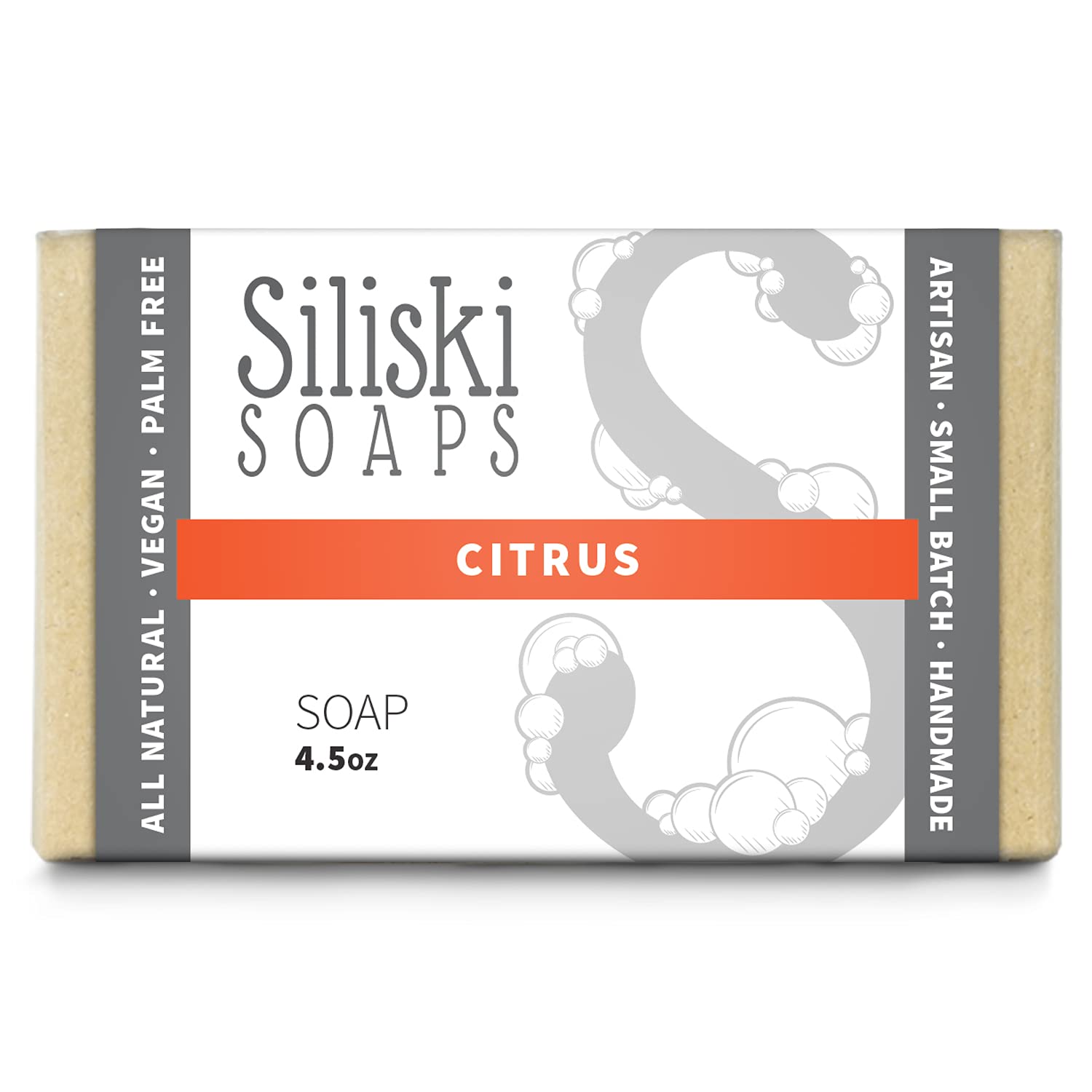 Siliski Soaps Simple Skincare, Hard, Gentle, Bath Soap, All Natural, Vegan And Palm Free - Citrus, 4.5 Oz
