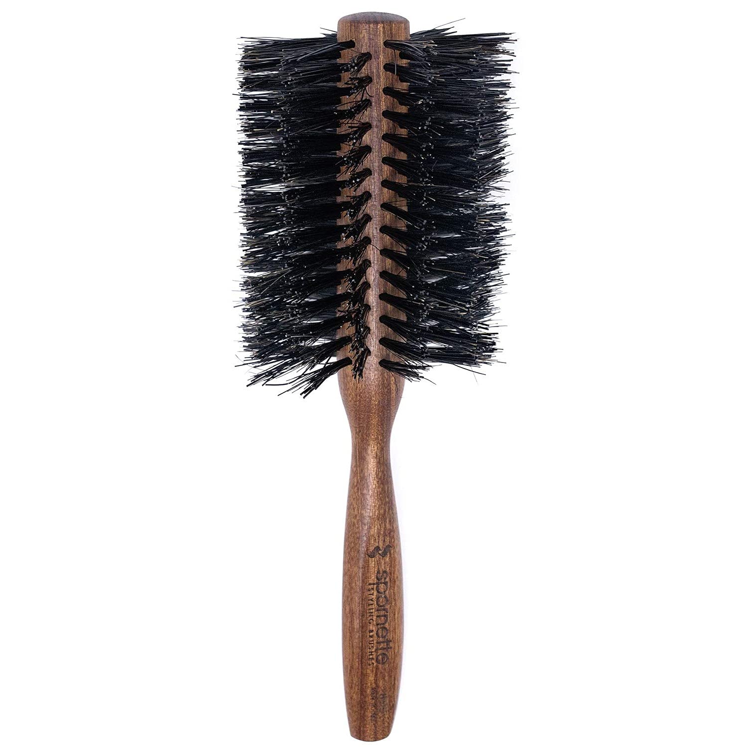 Spornette Italian Rounder 3 Inch (#855) - Round Boar Bristle Brush With Wooden Handle For Blow Drying, Styling, Volumizing, Stra