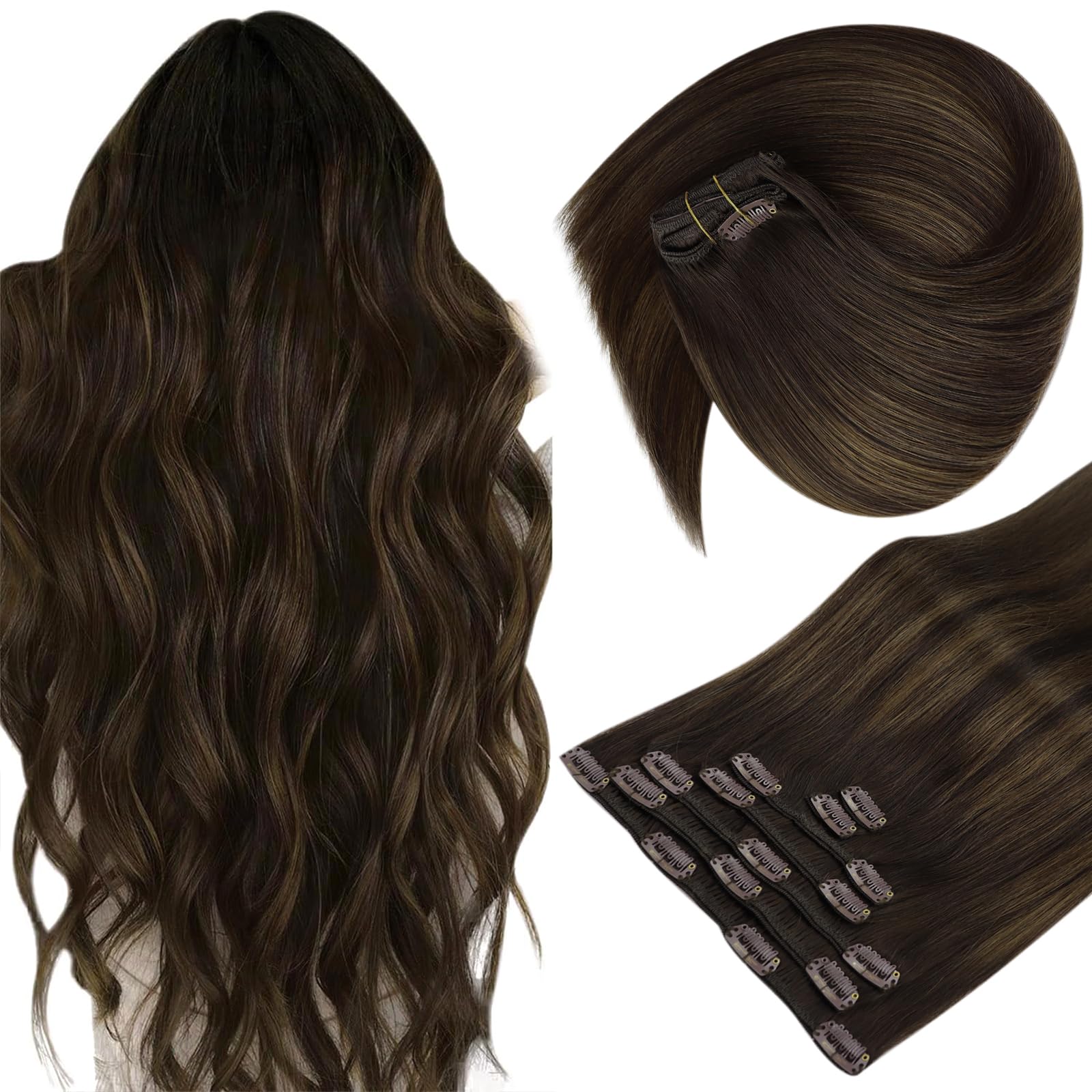 Sunny Clip In Extensions Human Hair Brown Human Hair Clip In Extensions Dark Brown Balayage Medium Brown Clip In Hair Piece Exte