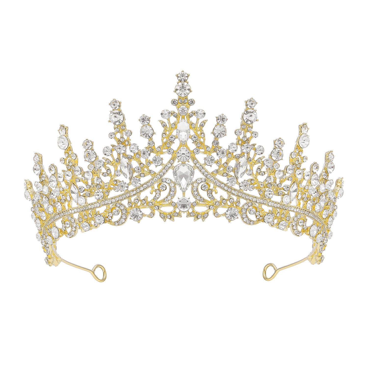 Sweetv Gold Princess Tiara For Women Girls,Royal Queen Tiara, Wedding Tiara For Bride,Crystal Hair Accessories For Quinceanera P