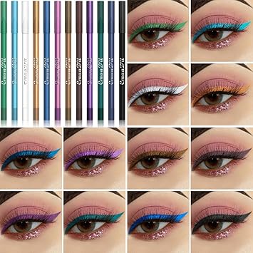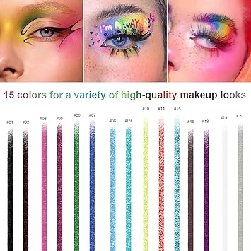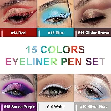 15 Colorful Eyeliner Pen Set, Eye Shadow Pencil, Pearl Kit Metallic Glitter Colored liner for Women Eye&Lip Liner Professional Waterproof Makeup