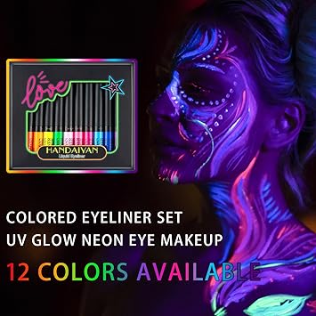 The 12 shades UV Glow eyeliner set delivers super high colored payoff help you design different charms you more charming and brings a better visual effects at UV night.