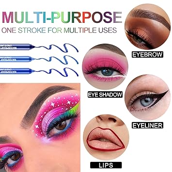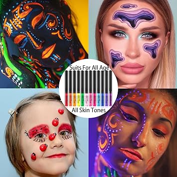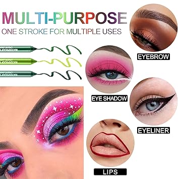 The multi-functional UV glow eyeliner not only can be as Eyeliner, Lip Liner, but also can be as eyeshadow pen, eyebrow, lipstick, blush, perfect for for all ages to create face and body painting for cute and fun art creative works.
