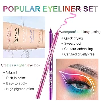 The stylish colorful eyeliner pen set contains 12 different bright and vivid colors.