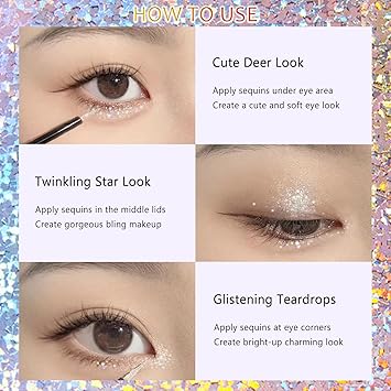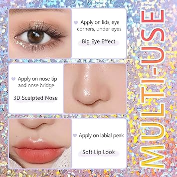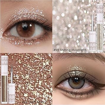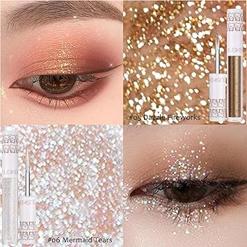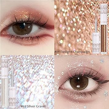 - 【Versatile and Multifunctional Use】The moisturizing liquid texture makes it adhere smoothly and thinly on your eye area and easily create a bling and crystal Korean makeup effect. You can use them to outline the eyeliners or use them on silkworm, head of the eye, or on the eyelashes to create a lovely spring and summer subtle glow makeup.