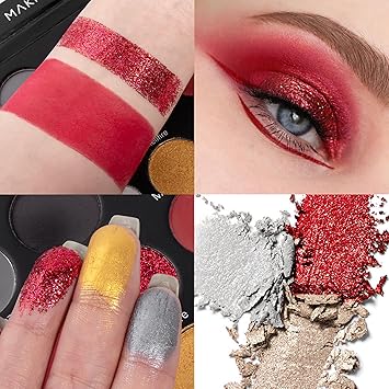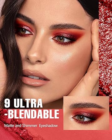 - BOLD RED EYESHADOW: The red eyeshadow palette filled with 9 rich, smooth, blendable colors in a range of matte, shimmer, sparkling, metallic glitter finishes with a soft-to-the-touch texture that smoothly glides on your lids and stays put.