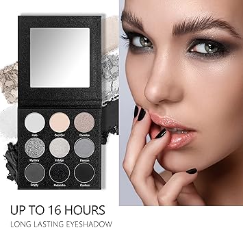 MAKI YIKA Black Grey Smokey Eyeshadow Palette, Matte White Gray Silver Smoky Eye Shadow, 9 Colors Long Lasting Makeup For Goth Look