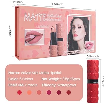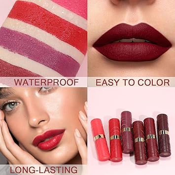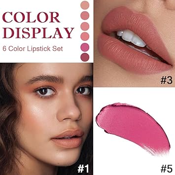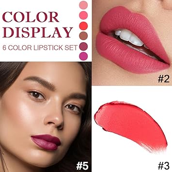6 Pcs Nude Pink Brown Rose Red Purple Matte Lipstick Set for Women Long Lasting Waterproof Moisturizing Lipsticks Older 24 Hours Lip Stick Stain Makeup Gift Kit,Lip Vegan