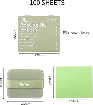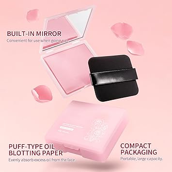 Erinde Oil Blotting Sheets for Face with Mirror and Puff, 300 Paper Oily Skin, Absorbing Sheet, Natural Control Film, Absorb Excess Oil, Makeup Friendly