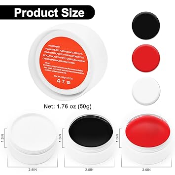 - Professional Face and Body Paint - Our oil based face paint set contains red black and white color. The net weight of each one is 50g/1.76 oz, large-capacity design can meet your multi needs for face and body.