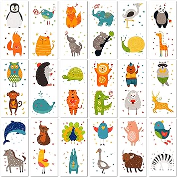 PapaKit Cute Zoo Animals 36 Temporary Fake Tattoo Set, 18 Individually Wrapped Sheets | Kids Girls & Boys Birthday Party Favor Gift Supply