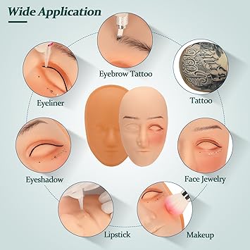 Tattoo Practice Skin Head, ATOMUS Facial Training Support Base, Soft Rubber Fake for Permanent Makeup Microblading Eyebrow Lip Eyeliner Tattooing
