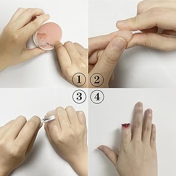 - SCUFFING EFFECT — Dip a proper amount of fake blood ointment on the skin or the skin wax that has been shaped, and then gently scratch it with a sponge to create a real abrasion effect. (Hint: Don't apply too much force during use, and don't apply too much blood ointment, otherwise it will cause lumps and lumps, and the imitation of scratches will not be so real.)