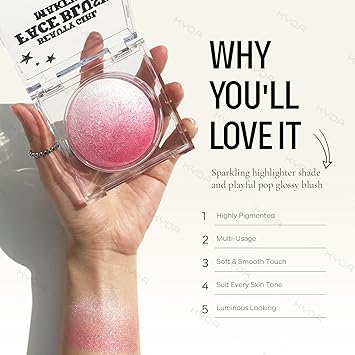 KYDA Pink Baked Blush, Glow Powder for Blush and Highlighter, High Glossy Finish, Lightweight Blendable Shimmer Blusher, Multiuse Powder, 0.53 oz