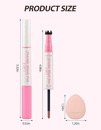 Freckle Pen and Liquid Blush Makeup Set, Stamp, Pencil with Powder Puff, Freckles Tattoo, Waterproof Quick Dry Long Lasting, Natural Sun-kiss Face #01