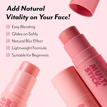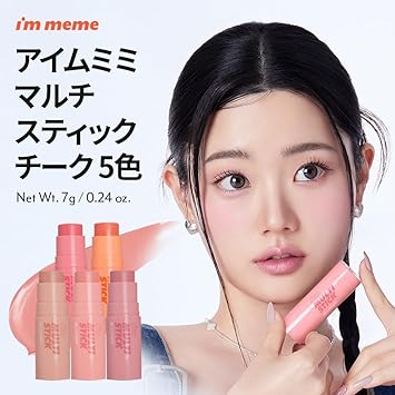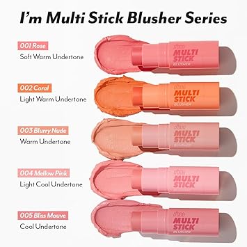 I'M MEME Blusher - I'm Multi Stick 004 Mellow Pink | Easy Blendable Cream Blush for Natural Look, Cheek Tint, Face Contour Makeup, and Blush, Suitable All Ages