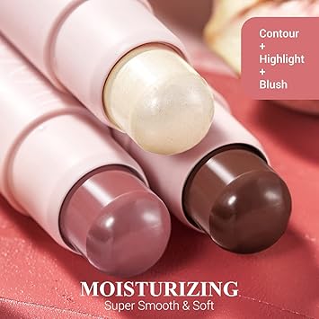 3PCS Cream Blush Highlighter Bronzer Contour Stick, Face Make up Kit Sticks for Girls and Women #HCB2 Medium to Dark