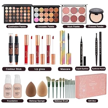 - 【All In One Makeup Kit】35-colour eyeshadow palette, 15-colour concealer, 6-colour blush palette, powder, contour stick, 3* lip gloss, mascara, Liquid Eyeliner, eyebrow pencil, 2-colour foundation, make-up sponge, Gift Box ,The All-in-one makeup Gift Set for Women Teens & Girls.