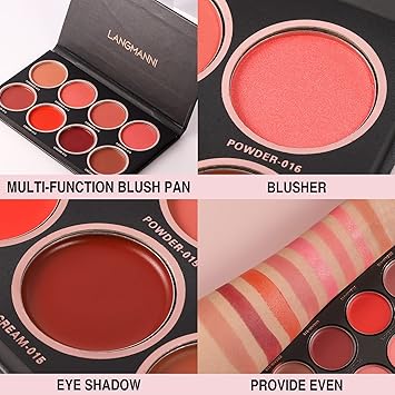 - 8 Colors Blush Palette :Our blush palette include 4 dry powders and 4 blush creams, with a variety of combinations that are easy to color, and intelligent color toning factors make the color rosy and translucent, and bring a natural matte effect to your skin tone.