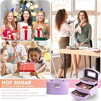 Hot Sugar Girls Makeup Kit for Birthday Gift, All in One Set Women Full Kit, Christmas Beauty Teens 10 12 13 16 Includes Real Cosmetics (Purple)