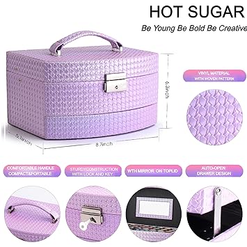 - REUSABLE MAKEUP CASE: Solid construction and vinyl material with diamond pattern make this carry all trunk makeup set sturdy and look gorgeous. It can be reused to store beauty brushes, makeup tools, applicators, watches, sunglasses, Jewelry and other small things.