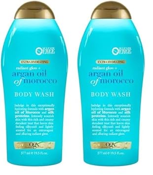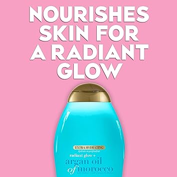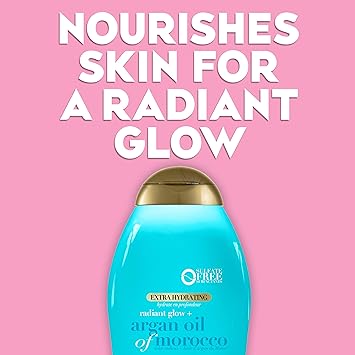 OGX Radiant Glow + Argan Oil of Morocco Extra Hydrating Body Wash for Dry Skin, Moisturizing Gel Cleanser Silky Soft Women, Sulfate-Free Surfactants, 19.5 fl oz