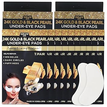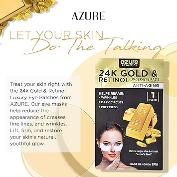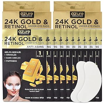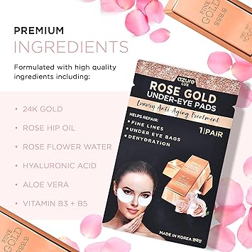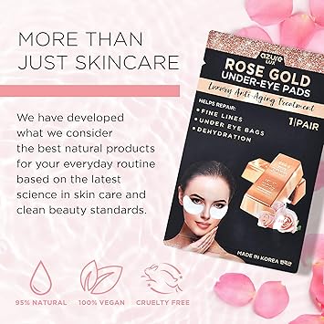 AZURE Rose Gold Luxury Anti Aging Under Eye Pads - Lifting, Smoothing & Hydrating Mask Patches Reduces Fine Lines, Wrinkles, Dark Circles Puffiness Skin Care Made in Korea 10 Pairs