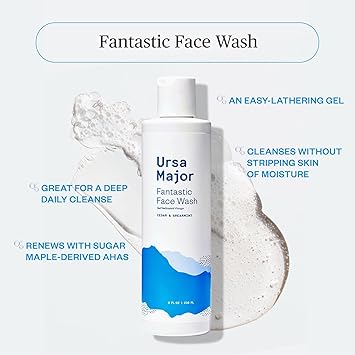 - URSA MAJOR FANTASTIC FACE WASH - This natural facial cleanser delivers a thorough and invigorating cleanse, plus a hit of AHA exfoliation, without stripping your skin of moisture or messing with its pH balance. Ideal for normal, combination, oily and acne-prone skin.
