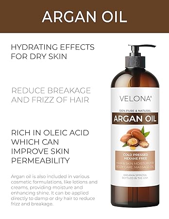 - Commonly used as a moisturizer, Argan oil can be applied directly to damp or dry hair to improve hydration, reduce breakage, and tame frizz. It is often included in various cosmetic formulations such as lotions and skin creams.