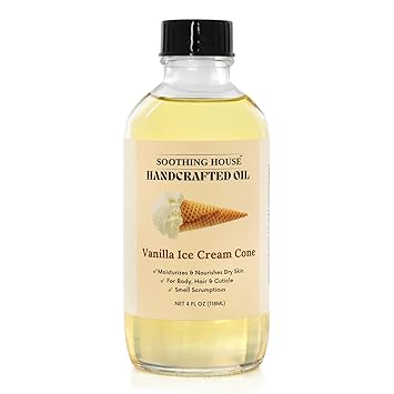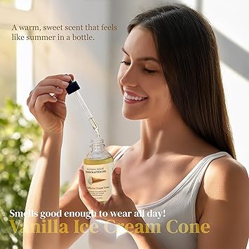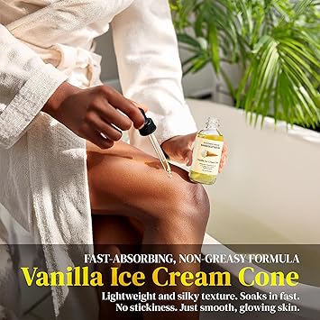 Vanilla Ice Cream Cone Body Oil - Premium Non-Greasy & Moisturizer for Dry Skin Glowing with Sweet Almond, Jojoba, and Vitamin E Oil, 4 Fl OZ