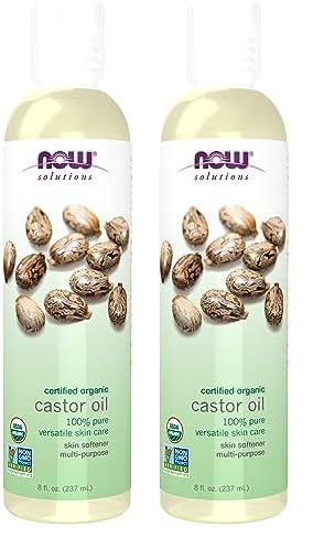NOW Foods Solutions, Organic Castor Oil, 100% Pure Versatile Skin Care, Multi-Purpose Softener, 8-Ounce
