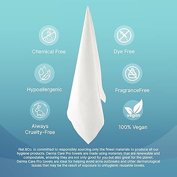 - 𝐍𝐎 𝐇𝐀𝐑𝐒𝐇 𝐈𝐍𝐆𝐑𝐄𝐃𝐈𝐀𝐍𝐓: Nat.&Co. Derma Care Pro's organic and bio-based extra-large face towels are chemical-free, unscented and non-irritating. Gentle enough for the bottoms, hands, and sensitive faces of kids. Ideal for sensitive skin and as a travel essentials accessories