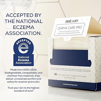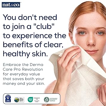 Nat.&Co. Derma Care Pro 100% USDA Biobased Material - Professional Grade Extra Large Face Towels Bio-Based Towel, Makeup Remover Dry Wipes, Facial Wash Cloths for Sensitive and Clean Skin 50 Count