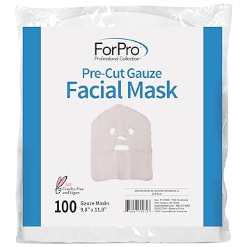ForPro Professional Collection Precut Gauze Facial Mask, 100% Cotton Gauze, for High Frequency Treatments and Masks, 100-Count