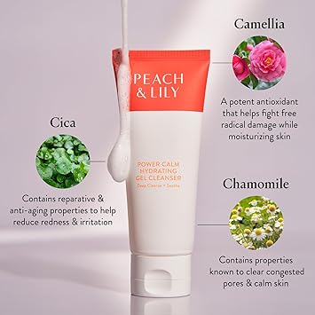 Peach & Lily - Power Calm Hydrating Gel Cleanser Korean Skincare Face Wash Dry, Normal, Oily Skin Vegan, Gluten Free, Fragrance Never Tested on Animals Travel Size 100 ML, 3.38 FL OZ